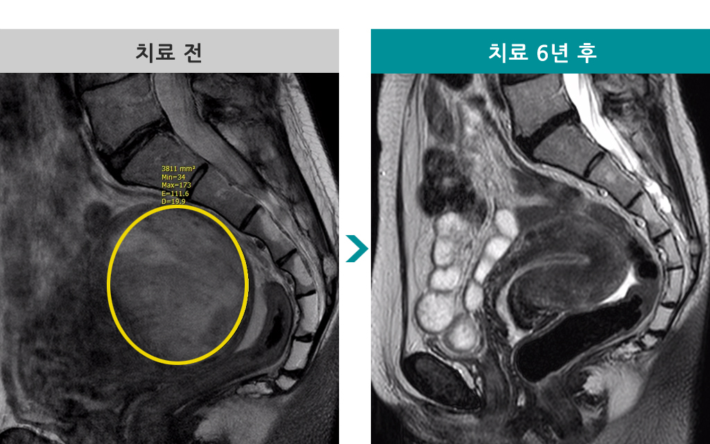 43세 [자궁근종 색전술] 전후 MRI사진 비교 - Before & After