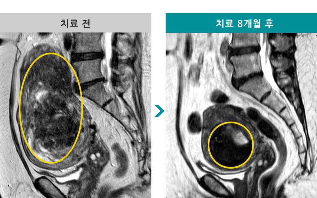 37세 [자궁근종 색전술] 전후 MRI사진 비교 - 자연 배출