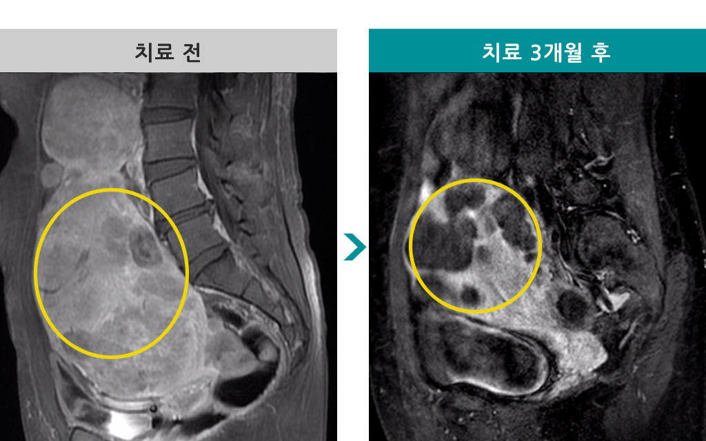 [자궁근종 색전술] 전후 MRI사진 비교